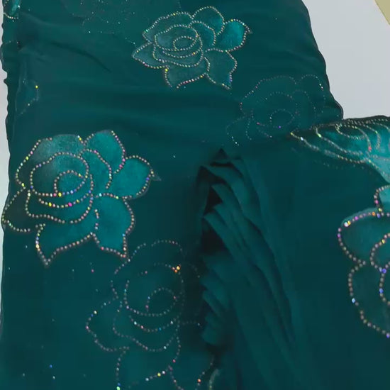 This elegant 3-piece suit set features a soft stone velvet fabric with delicate chiffon. The shirt is beautifully crafted with intricate flower applique detailing on both the front and back, ensuring a cohesive and refined look. The lightweight chiffon fabric, measuring 2.5 yards, provides comfort and breathability, perfect for any occasion. The matching soft silk shalwar enhances the overall elegance of the set. Dupatta is also adorned with a stunning flower applique pattern, adding a touch of sophistication to complete the ensemble.