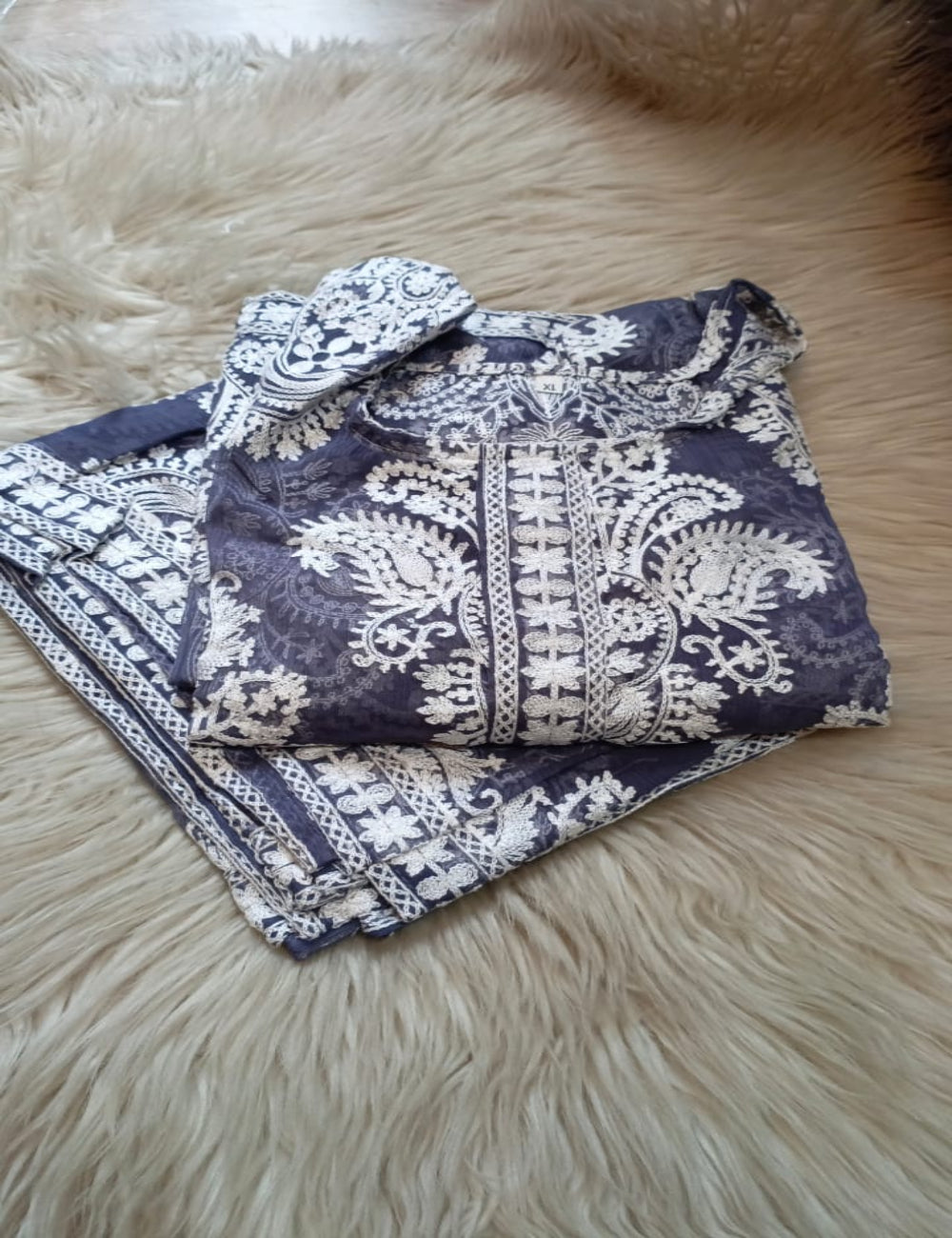 Pure chiffon original Indian chicken kari shirt with heavy chicken kari embroidered dupatta 2px