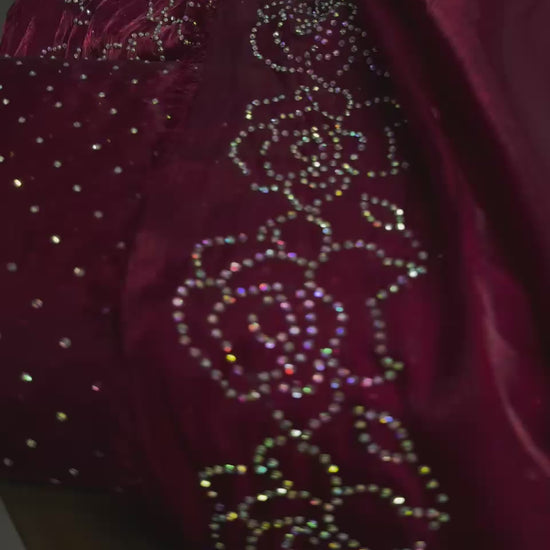 Premium Korean Sheesha Silk 3pc Suit, this suit offers a soft, smooth texture with an exquisite sheen. It features stunning diamond stone embellishments, adding just the right touch of sparkle to your look. The full shirt 2.5 yard is designed with intricate detailing to enhance your silhouette, while the 2.5 yard dupatta with a beautiful flower-cut pattern completes the ensemble. Paired with a soft silk shalwar.